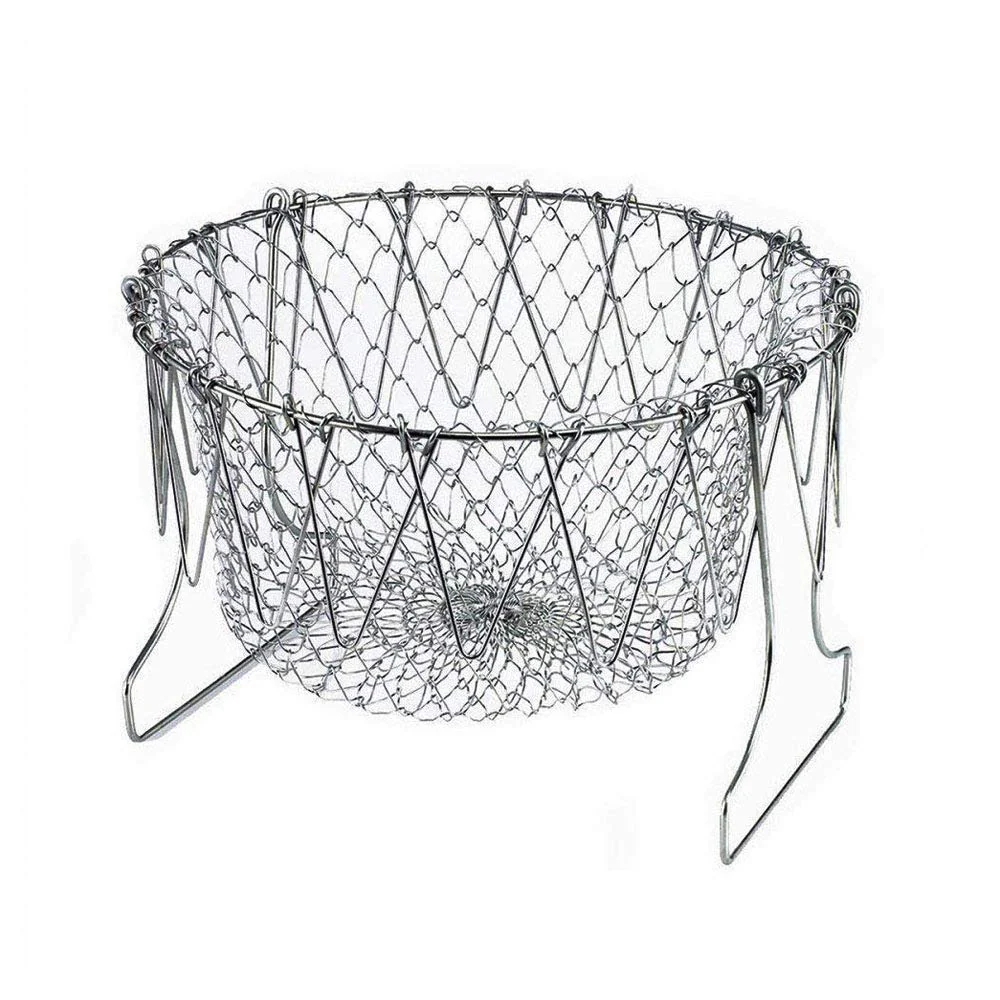 Upgrade your kitchen with a Stainless Steel Foldable Chef Basket—perfect for steaming vegetables, frying snacks, boiling eggs, and straining pasta. Durable, space-saving, and easy to clean kitchen essential.