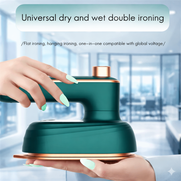 Compact portable travel steam iron with 50ml tank, fast heating, wet & dry ironing, titanium soleplate, and powerful steam cleaning performance.